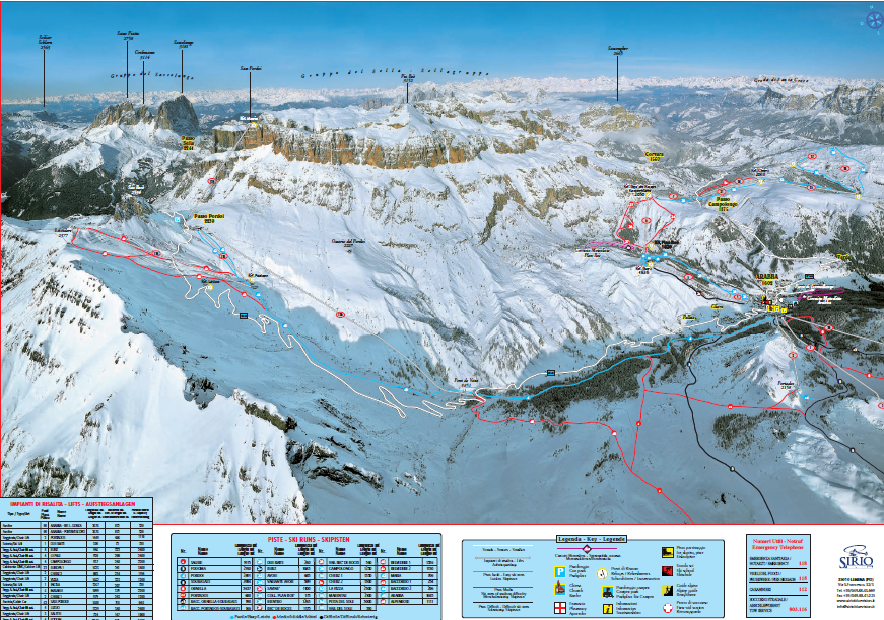 Когда вспоминают курорт Мармолада, говорят «ледник» и «захватывающие панорамы». Этот курорт очень популярный среди лыжников своими экстремально-крутыми трассами и включает в себя два связанные между собой курорта Арабба и Мальга-Кьяпела. Порой говорят, что здесь можно катать на краю неба. Безбашеный лыжник иль сноубордист найдет достаточно трасс для катания, в то время как начинающий – намного меньше. Эстеты оценят курорт по достоинству, так как склоны здесь просто головокружительны с красивым панорамным видом, например, на пике горы Сасс-Пордои (2590 м) находится лучшая смотровая площадка в Доломитовых Альпах. Можно отснять интересных и необычных видео и фото самостоятельно или с друзьями.