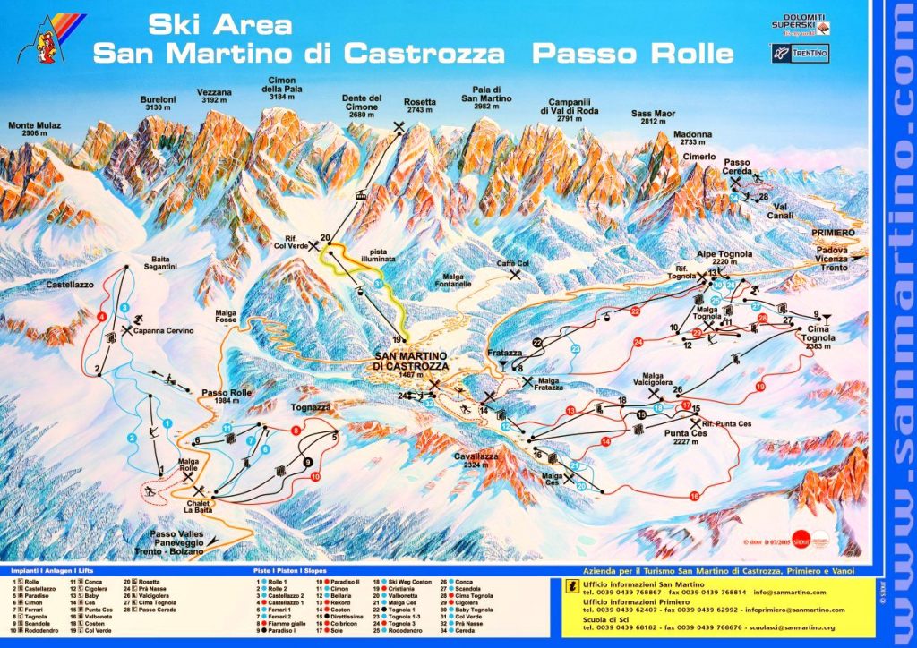 Сан-Мартино ди Кастроцца и Пассо Ролле также входят в знаменитый регион Доломиты Супер Ски. При желании можно приобрести скипасс на всю зону Доломит и получить доступ к 12 горнолыжным курортам области и более 1220 км трасс.