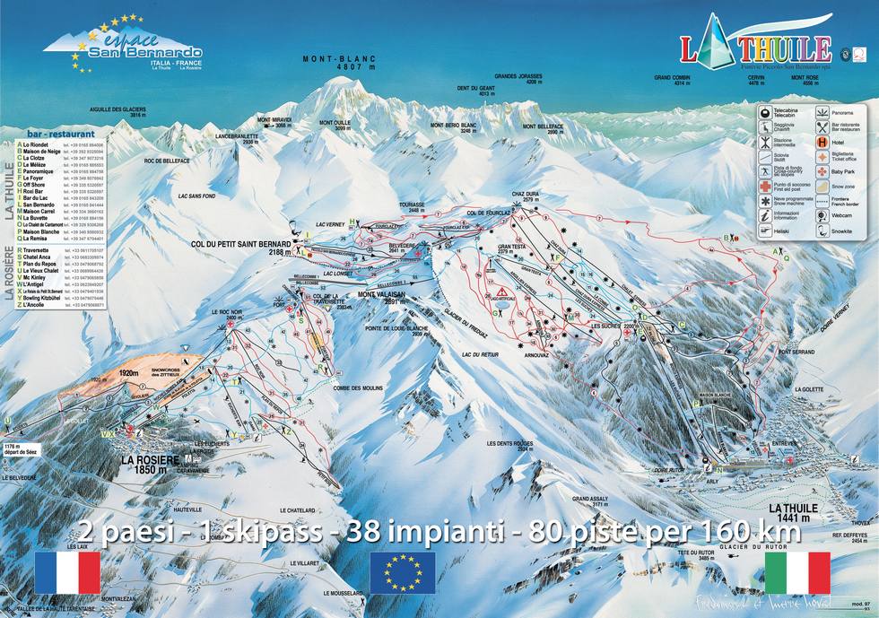 Ски-пасс La Thuile — Espace San Bernardo (взрослые/молодежь): на день €40.- /€28.- ; три дня €115.- /€69.-; шесть дней €210.- /€126.-